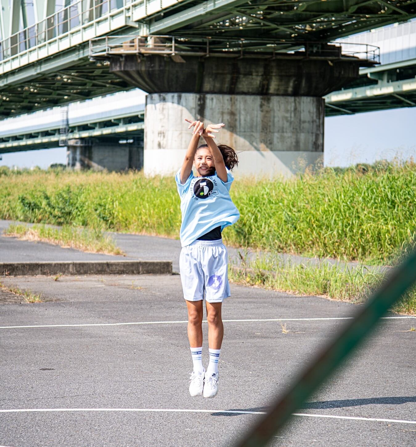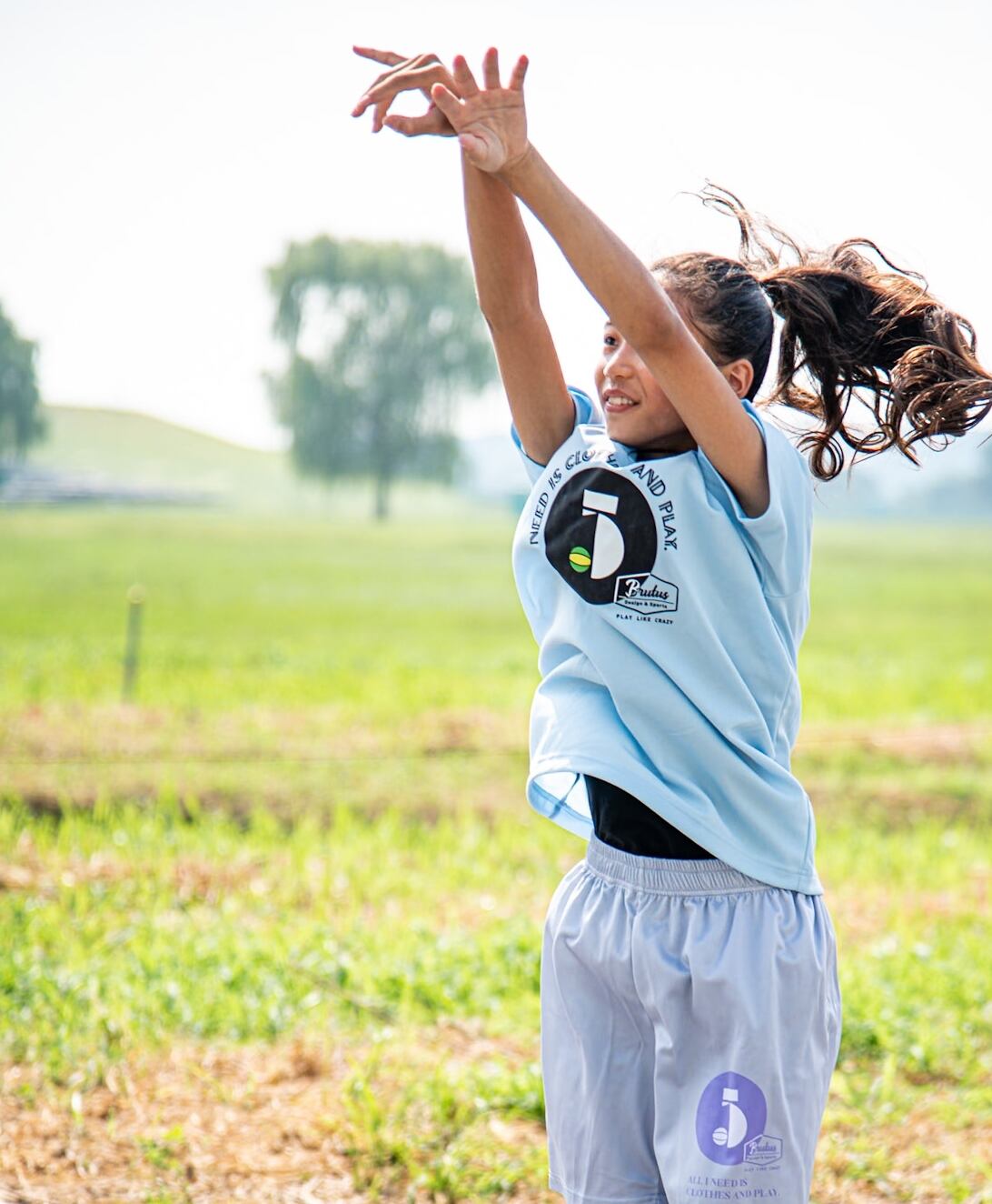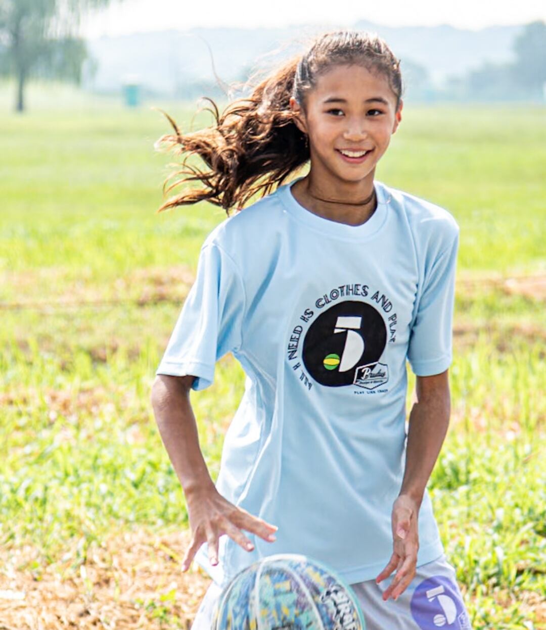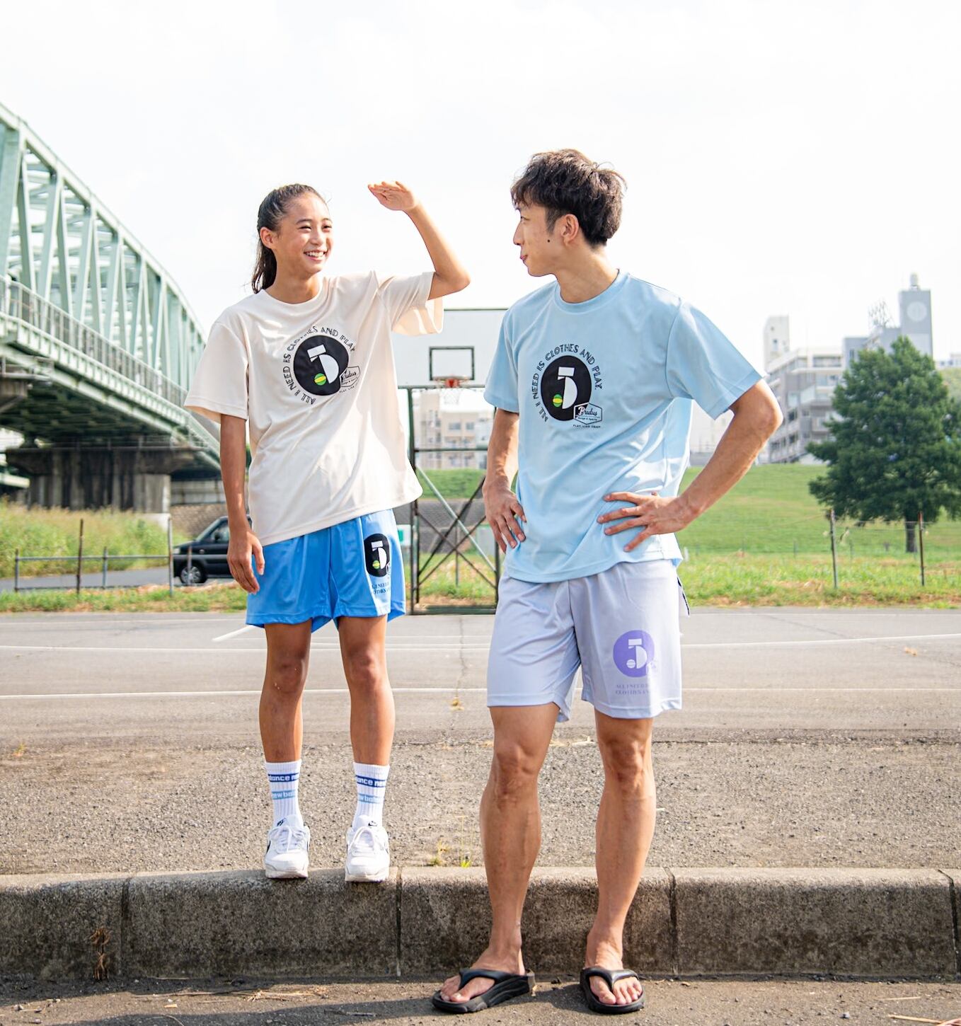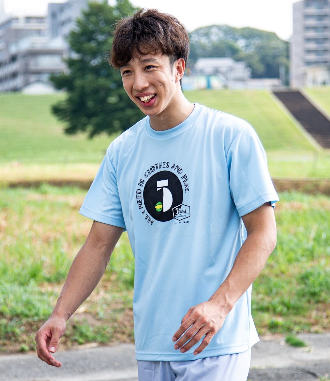 【 ALL I NEED IS CLOTHES AND PLAY 】はメインロゴを囲むように。ドライTシャツ、フロント全面に合わせたフォントを使用することで一体感を演出。